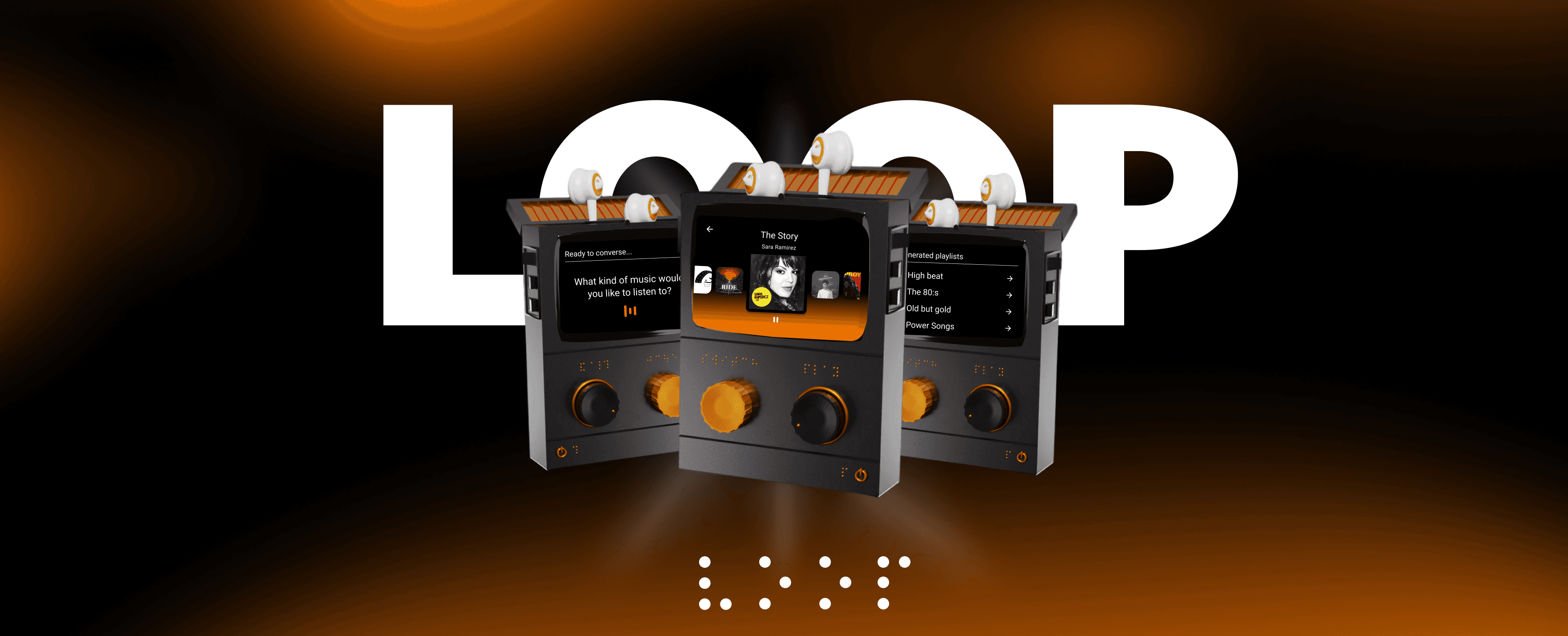 Loop is a music player designed for blind and visually impaired users. The product features physical buttons, voice control through AI, and tactile feedback. Easy to use, with focus on accessibility and respect for diverse experiences.