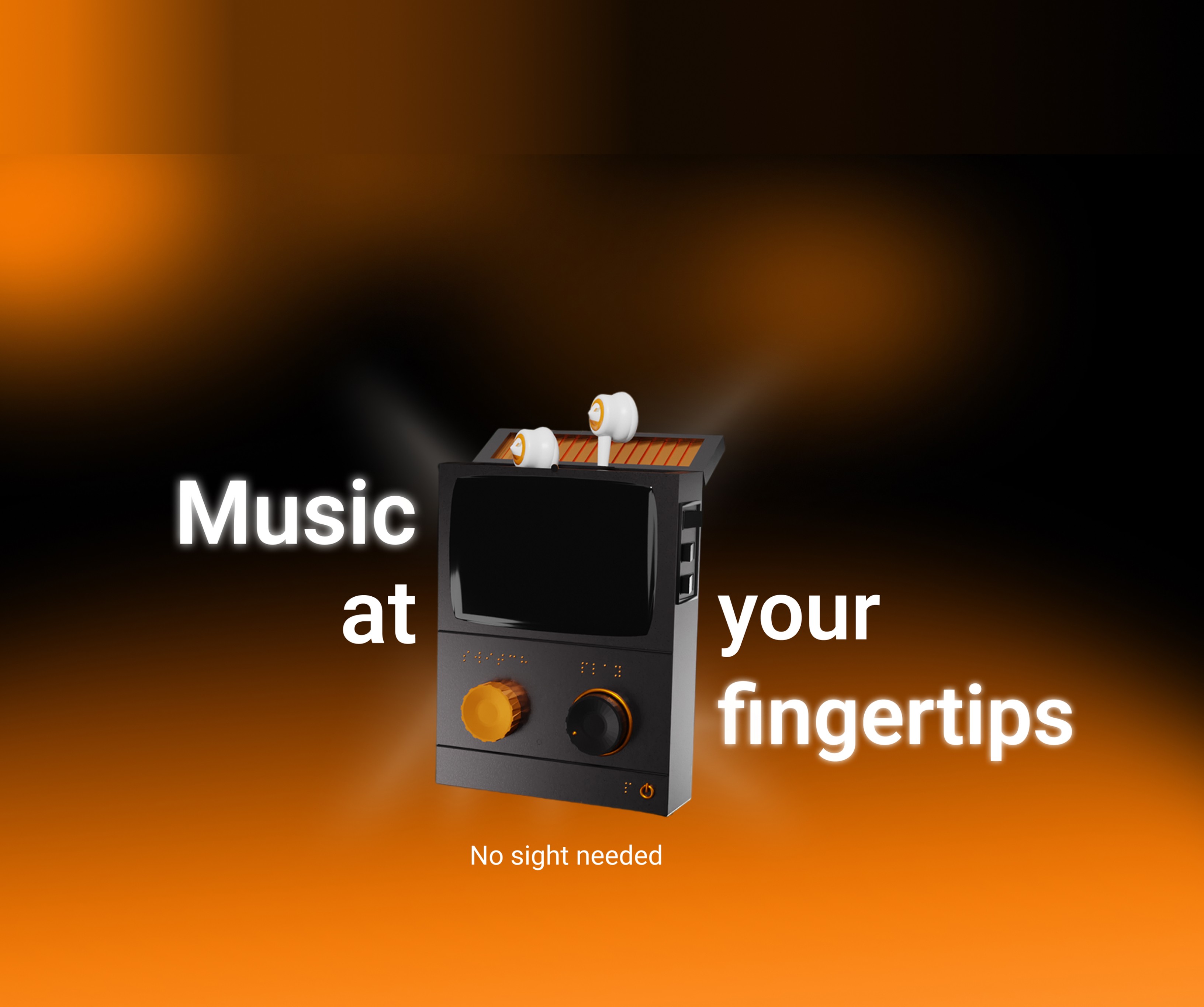 The process began with interviews and research to understand the everyday challenges blind users face with current music players. The concept is built on how blind users are often neglected in the creation of digital products. Insights from conversations guided the design—focusing on tactile feedback, simplicity, and accessibility. A 3D model was then built to showcase how the product would work. Prototypes were tested closely with users to create a product that truly meets their needs.